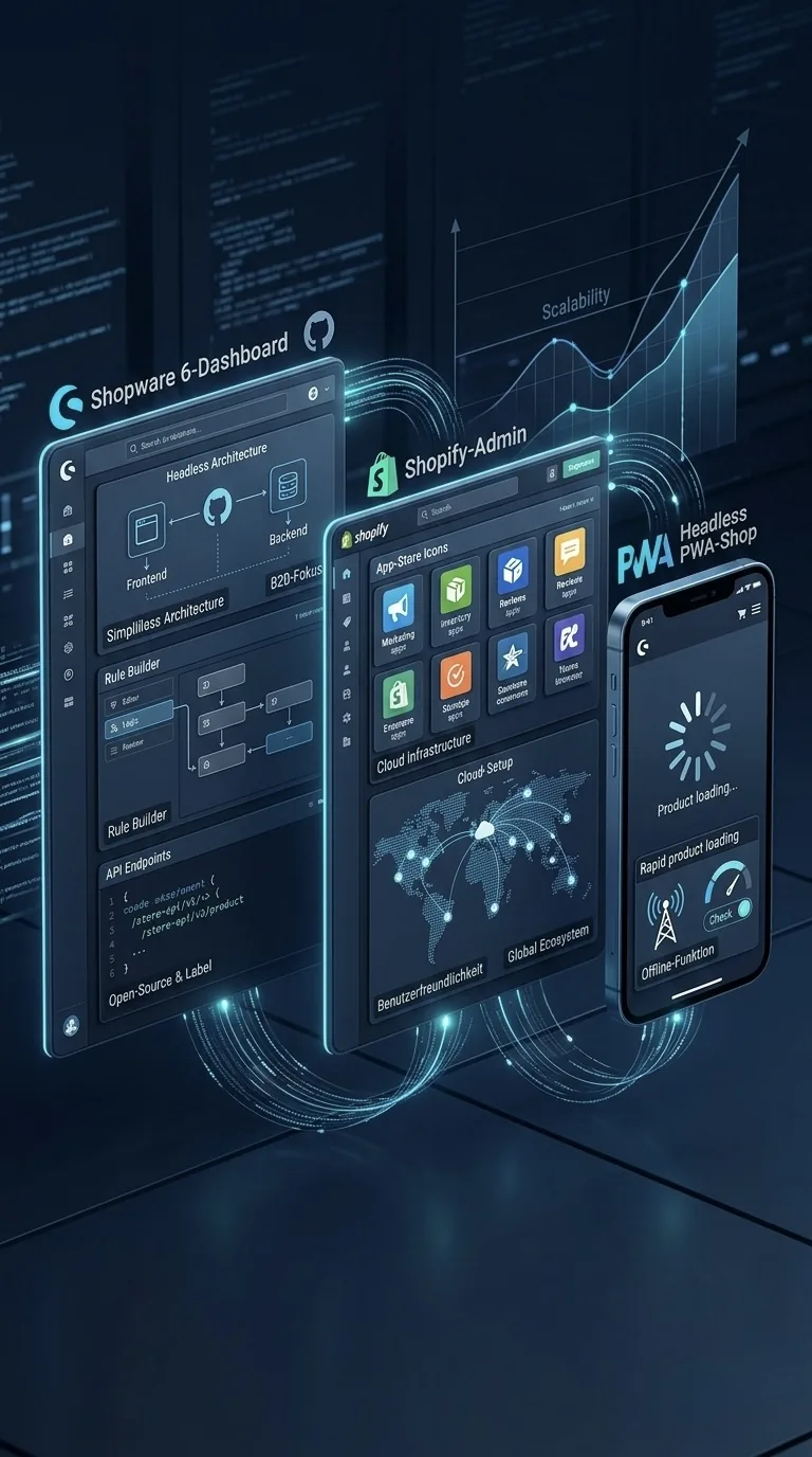 Shopware 6 or Shopify? Based on your goals, we recommend the ideal solution for maximum performance and scalability.
